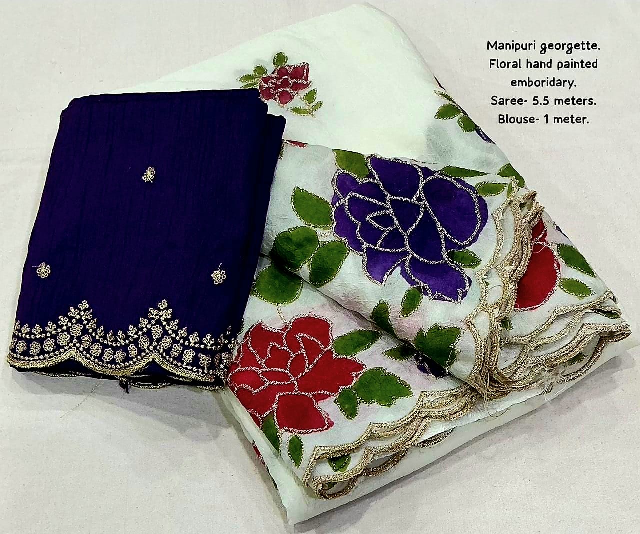 Beautiful Manipuri Georgette Floral Handpainted saree