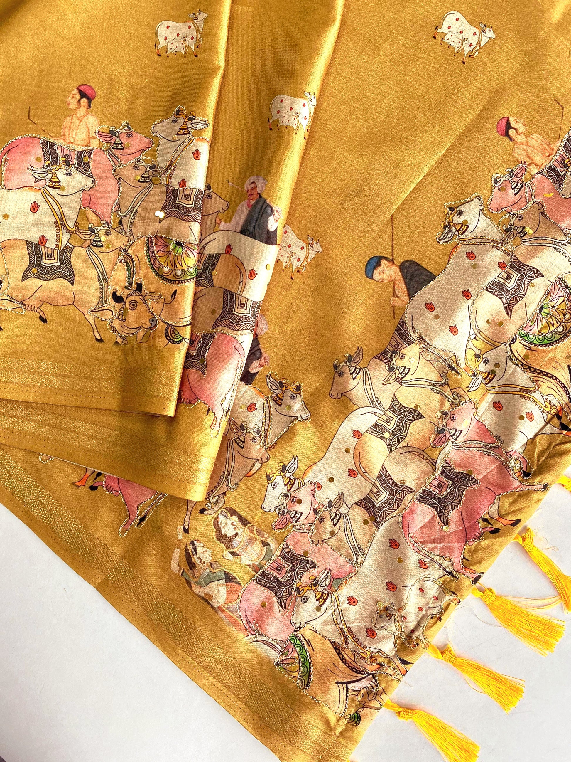 Dola silk saree with pitchwai embroidered work