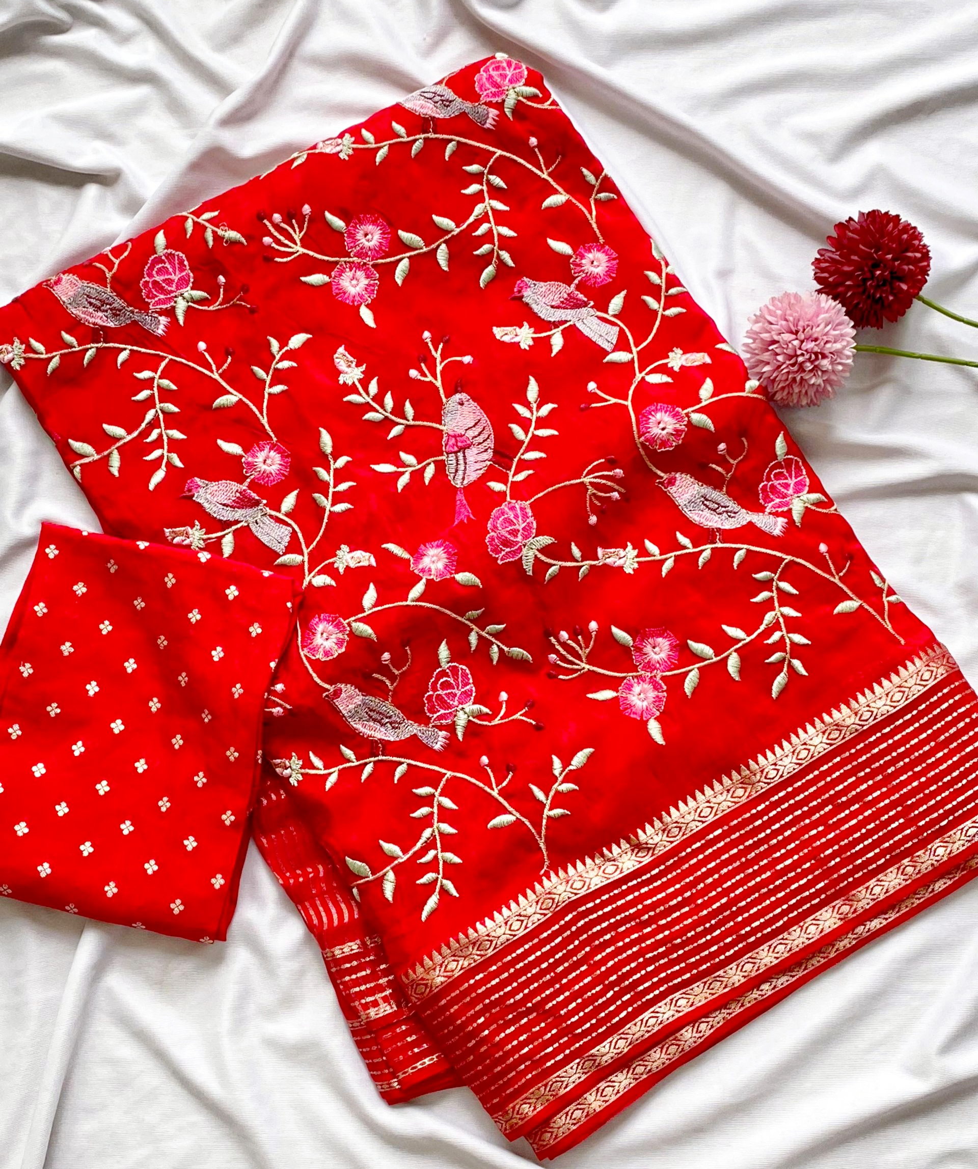 Premium silk saree with beautiful Handwork floral Thread embroidery